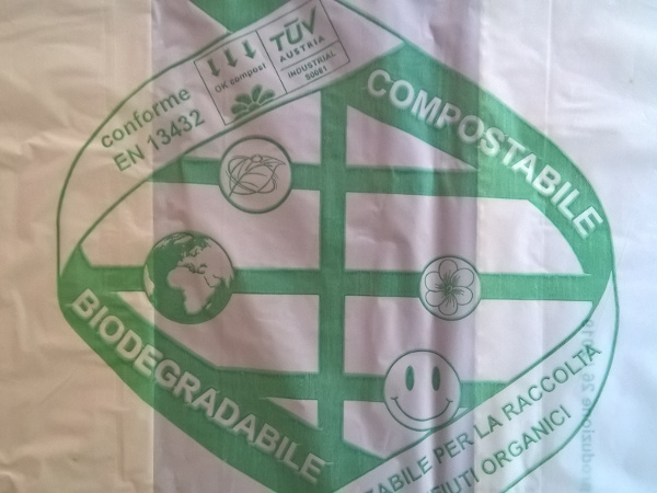 • Tworzywo: Wyprodukowane z Mater-Bi - tworzywa na bazie odnawialnych surowców naturalnych, niemodyfikowanych genetycznie.