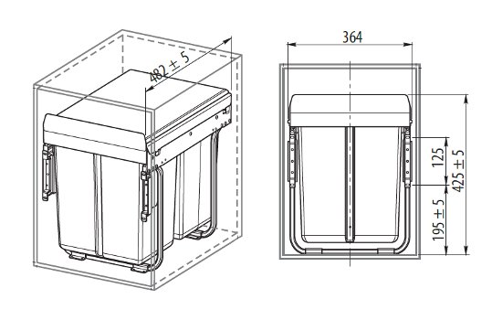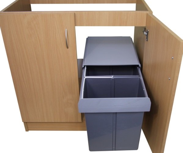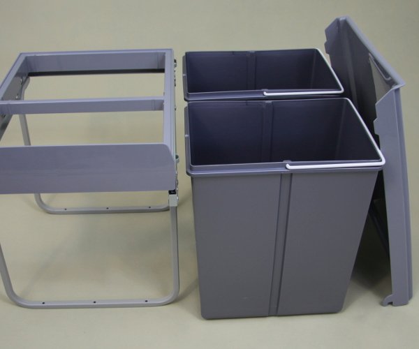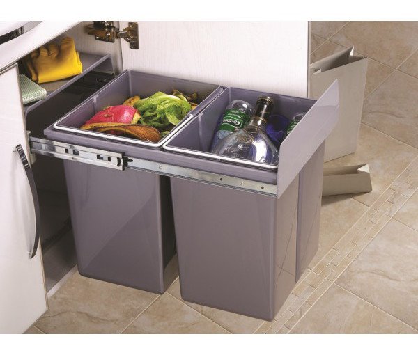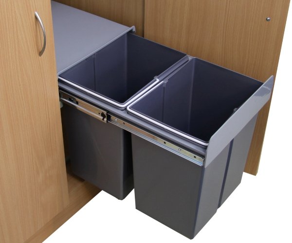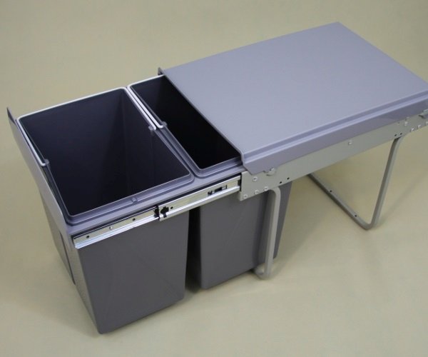 Dwupojemnikowy, kuchenny segregator odpadów o łącznej pojemności 40 L (2x20 L).